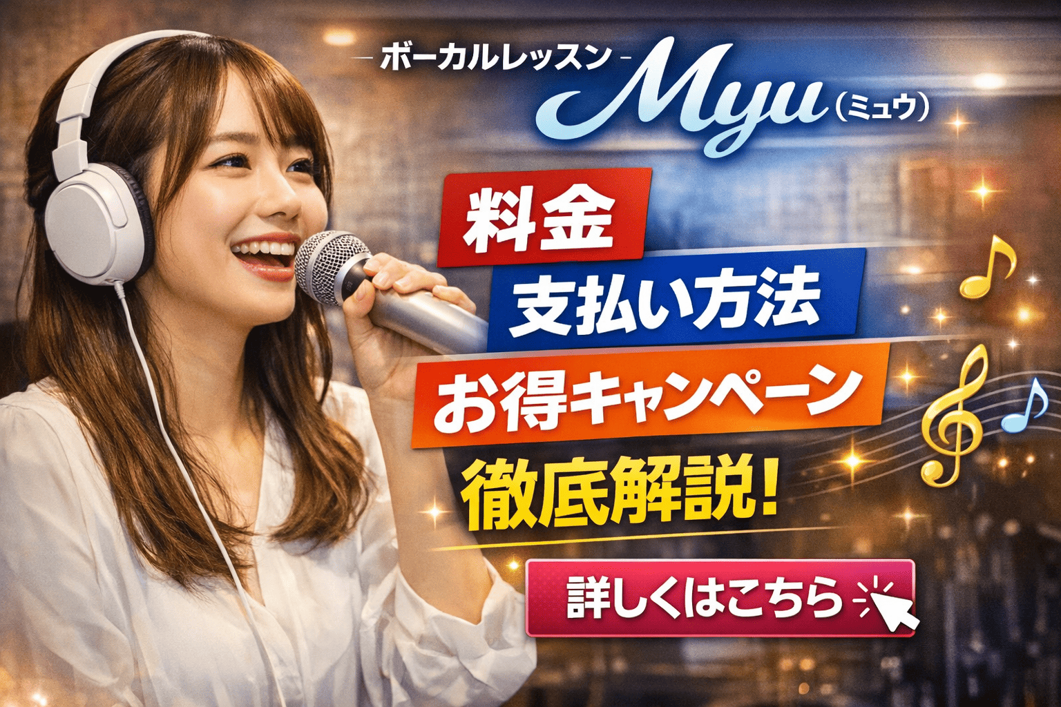 ボーカルレッスンMyu(ミュウ)は、首都圏を中心に全国10校舎を展開する人気のボイストレーニングスクールです。この記事では、Myuの料金体系やお得なキャンペーン、支払い方法、無料体験レッスンについて詳しく解説します。