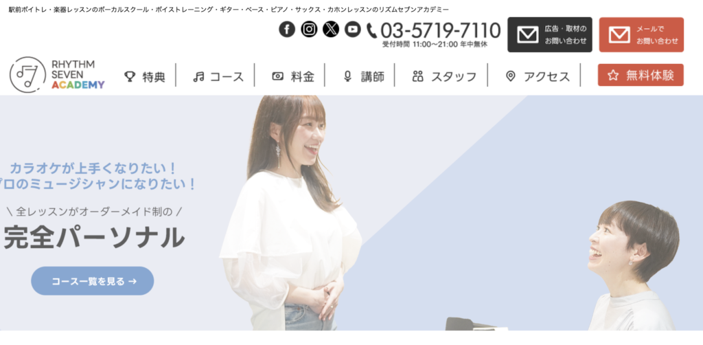 • リズムセブンアカデミー:高円寺駅前校で完全マンツーマンの「駅前ボイトレ」を展開、カラオケ館との提携も特徴