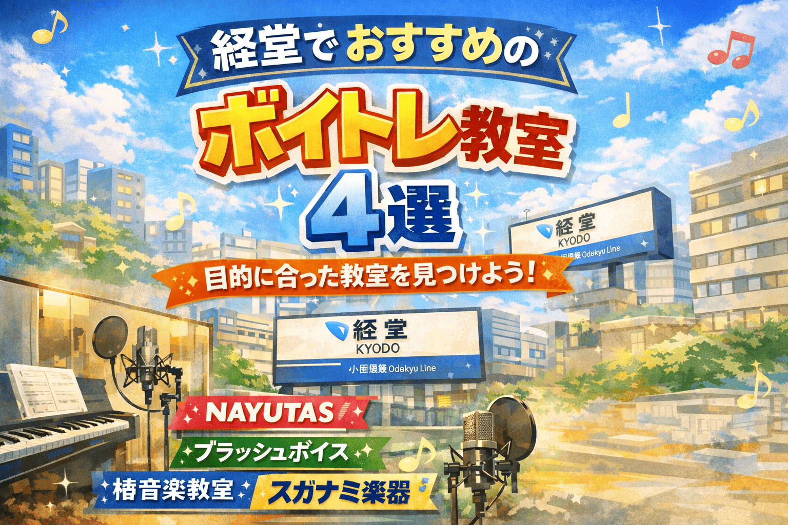 小田急線沿いの人気エリアである経堂は、住みやすさと都心へのアクセスの良さから多くの人が集まる街です。この経堂エリアで「歌が上手くなりたい」「カラオケで自信を持って歌いたい」と考えている方に向けて、質の高いボイストレーニングを受けられる教室をご紹介します。
