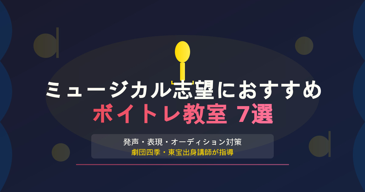 本記事では、ミュージカルに特化したレッスンを提供する、または高い専門性を持つボイトレ教室を厳選してご紹介します。劇団四季や東宝ミュージカルなどプロの舞台で活躍した講師による指導、オーディション対策、実践的なレッスン内容など、ミュージカル志望者に必要な要素を備えた教室をピックアップしました。