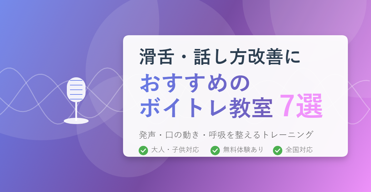 この記事では、滑舌・話し方改善に特化したボイトレ教室をご紹介します。発声の基礎から口の動き、呼吸法まで、プロの指導で着実にレベルアップしていける教室を厳選しました。